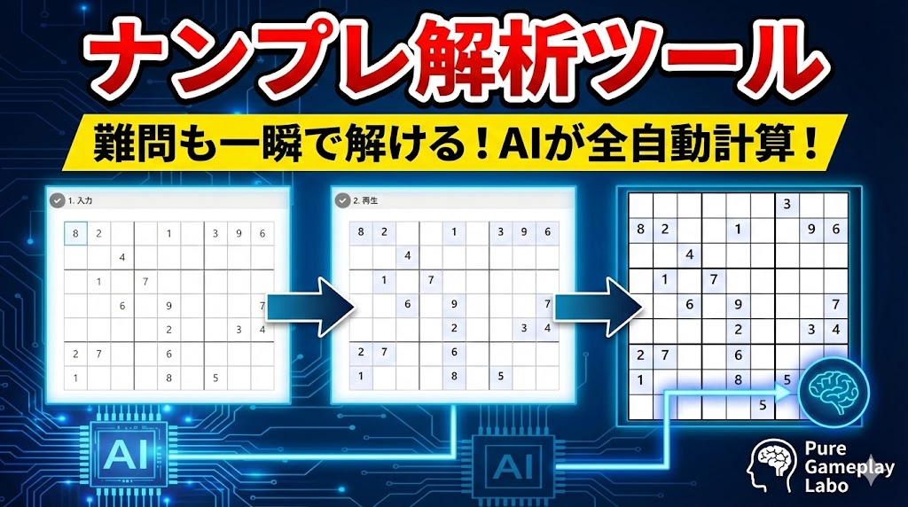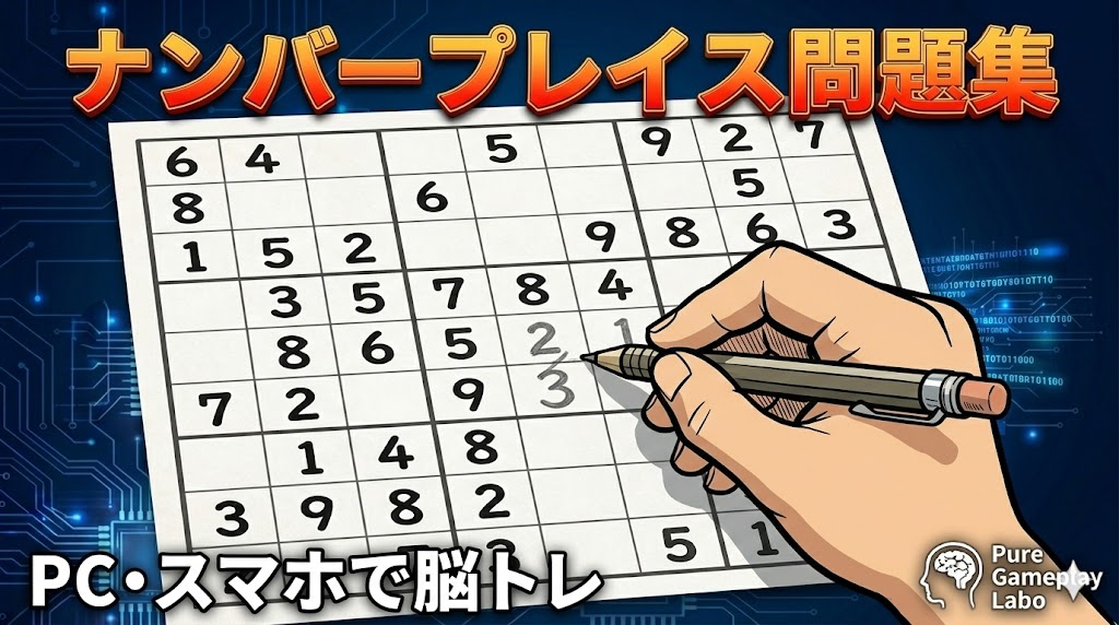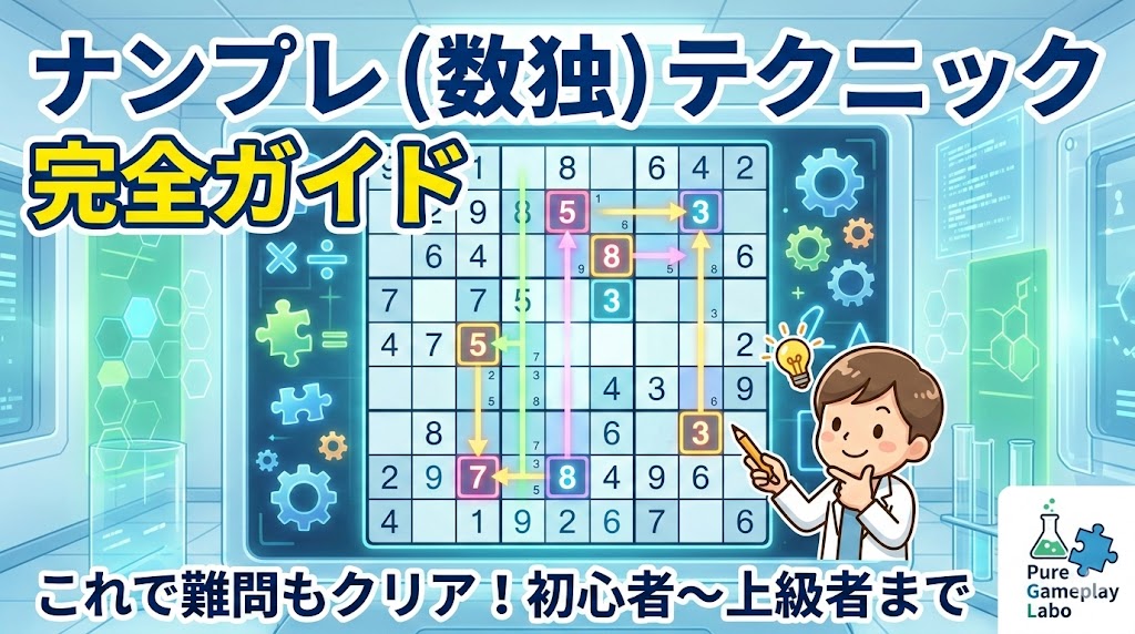 本記事は、ナンプレ(数独)を 「当てずっぽう」ではなく論理で解く ための主要テクニックを、初心者〜上級者向けに体系化した長文ガイドです。公式ルール(行・列・3×3ブロック)から、候補(ペンシルマーク)管理、シングル、相互作用、魚(X-Wing / Swordfish / Jellyfish)、ウイング(XY / XYZ)、カラーリング、フォーク、強制連鎖、ALS、唯一性(Unique Rectangle 等)、さらにコンピュータ解法(バックトラッキング/DLX / Algorithm X)までを扱います。