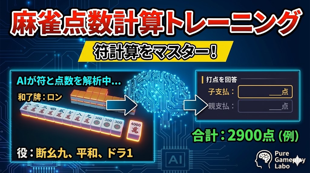 このゲームでは、実戦に近い出題形式で点数計算を繰り返し練習できます。